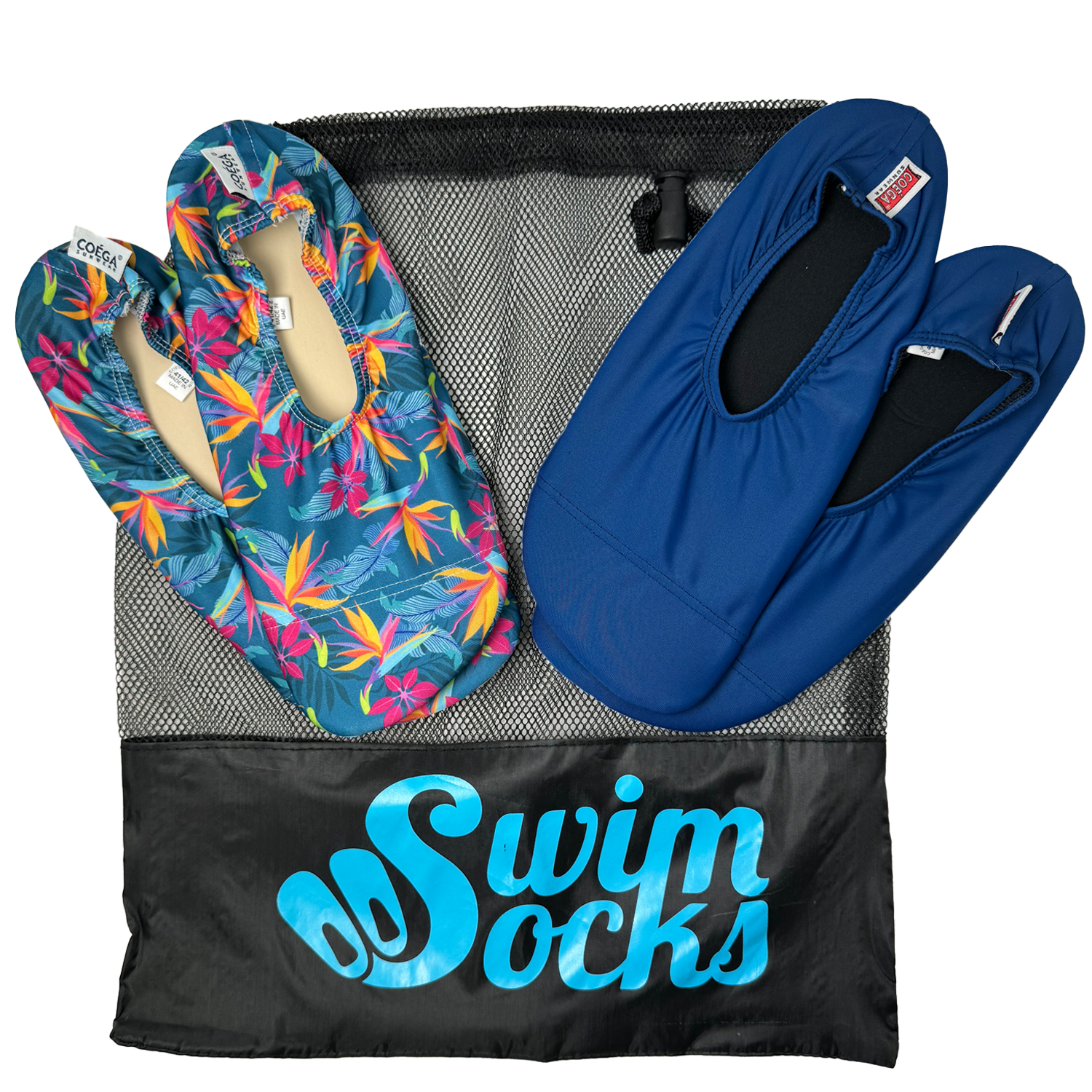 Love my Swim Socks…. I have severe nerve damage in my foot and these are great they give me enough protection without being heavy and stick to my feet in the water so no great of losing them while swimming.. more stock in great patterns please 😊