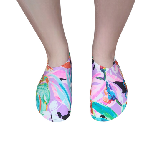 Aside from the great colours, I really like these swim socks because they are comfortable and, more importantly for me, sticky. I aquacise almost every day and these socks do not allow me to slip in the middle of an exercise. Moreover, when walking around outside I do not notice how hard the ground is. These will be my go-to swim socks from now on.