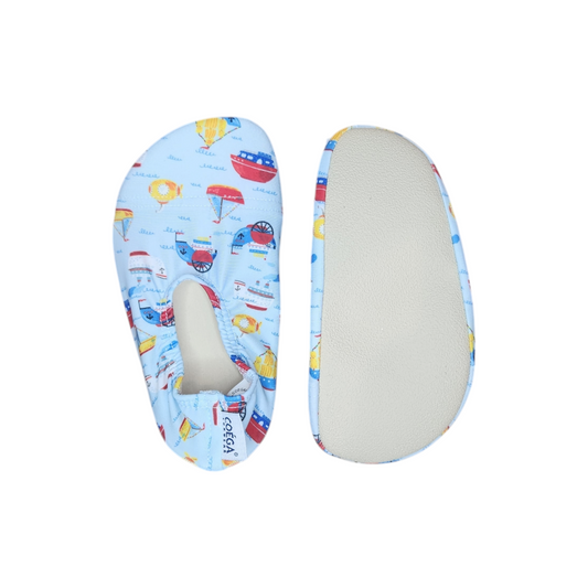 Swim Socks will keep your feet clean and protected during both outdoor water activities or indoors on wet or slippery surfaces. These durable but lightweight pool and beach shoes provide a barefoot feel with superior protection from rough terrains and heat at pools, beaches and waterparks. Re-enforced toes and flat stitching allow for great comfort with a secure but easily removable fit, even when wet! A great product to maintain grip on tile floors too, and perfect to improve hygiene in yucky pool showers or campsite bathrooms.
